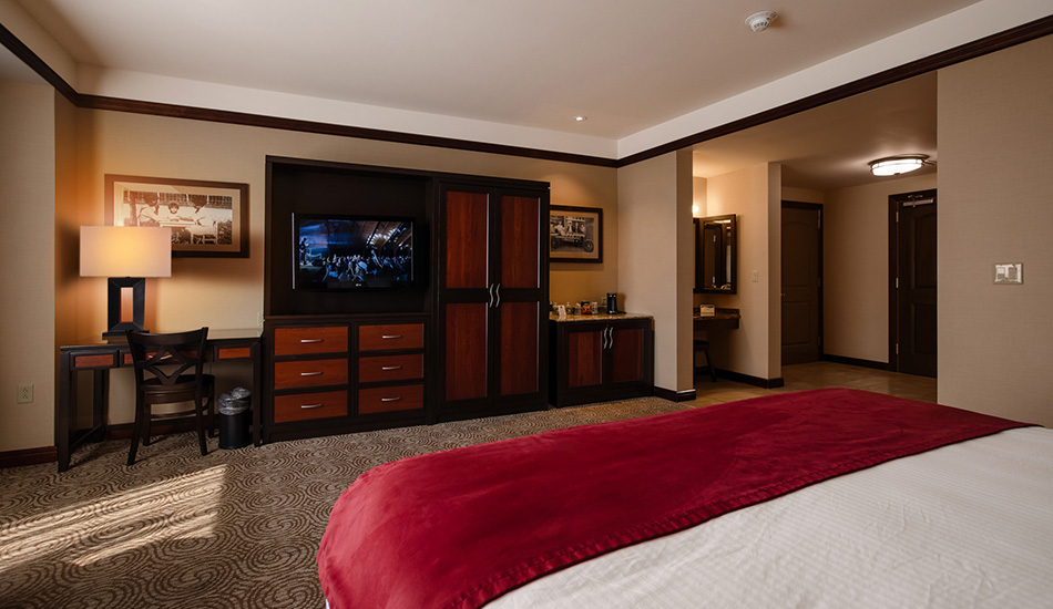Upgrade your getaway with our Executive King, featuring expanded square footage, refined furnishings, and a relaxing lounge area to recharge in total comfort.