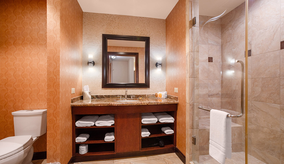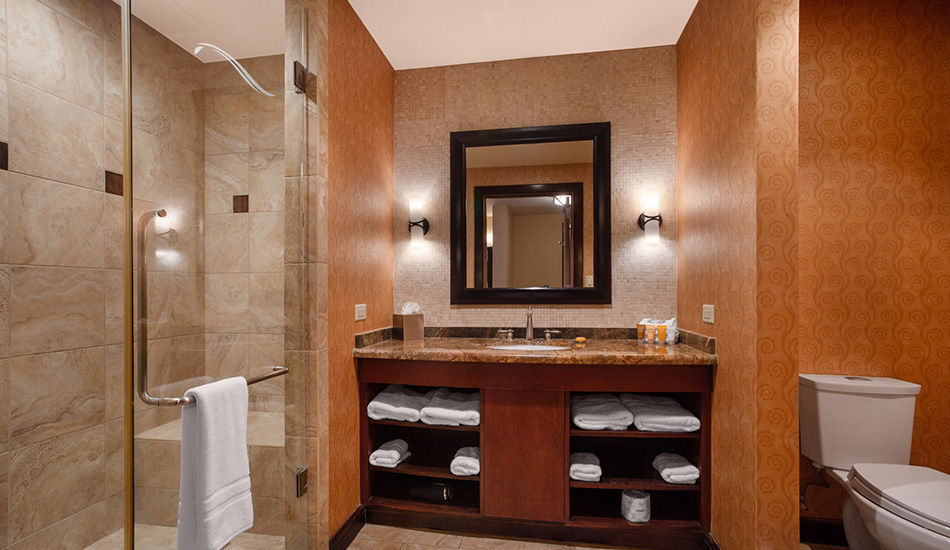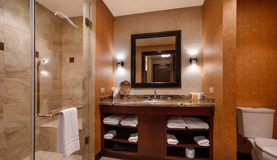 Enjoy an effortless stay with roll-in showers and accessible amenities, all wrapped in the modern styling of the Kappa Tower.