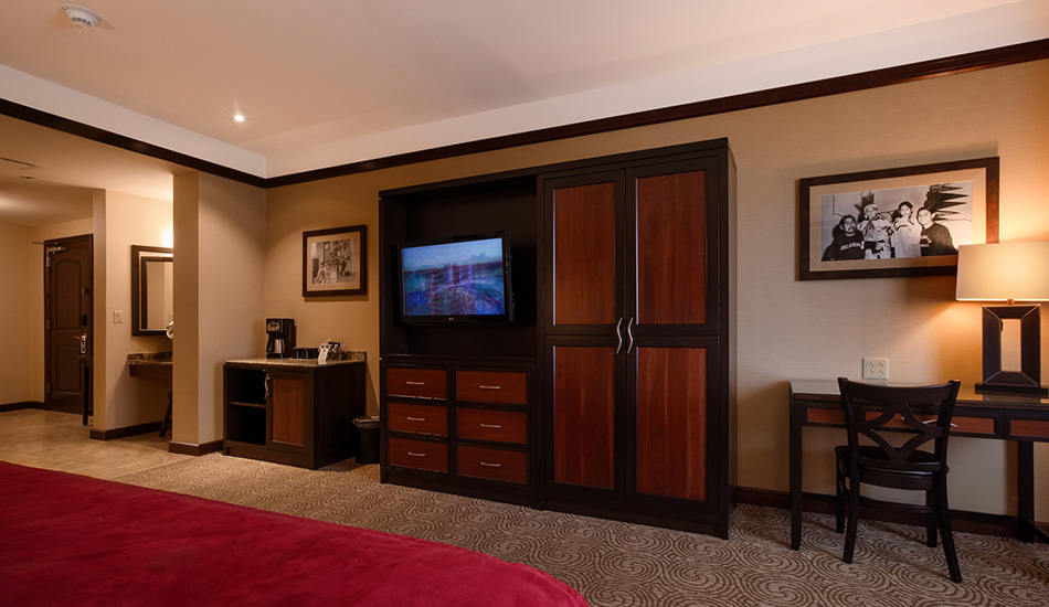 Enjoy spacious comfort in our classic King Room, located in the Osotouy Tower. Thoughtful design and tribal accents blend with upscale amenities for a relaxing stay steps from the casino.