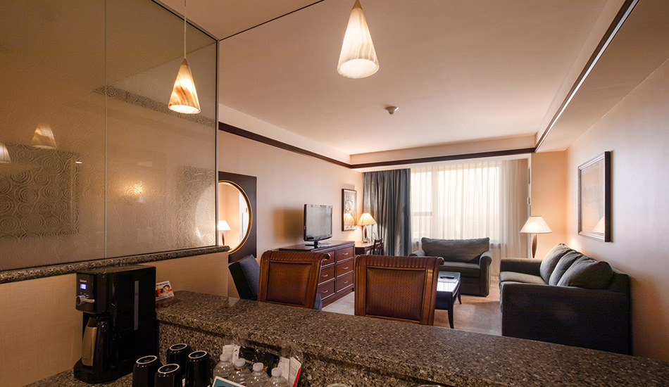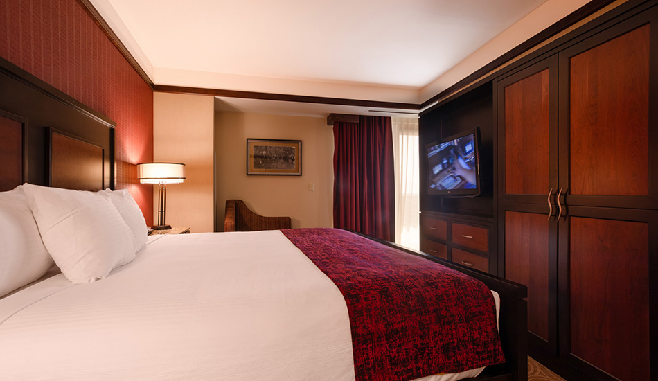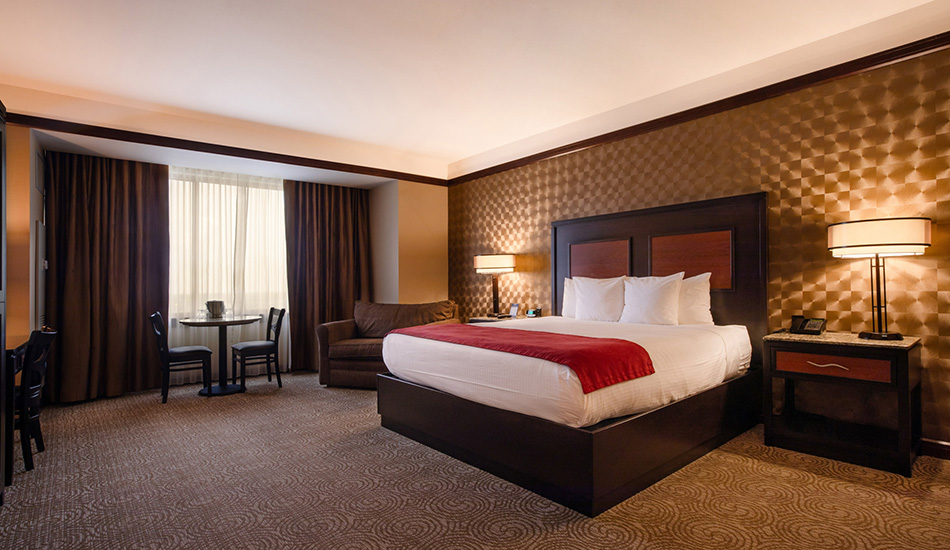 Modern and refined, the Kappa Tower King Room offers contemporary furnishings, warm tones, and plush bedding—perfect for unwinding after a night of gaming or entertainment.