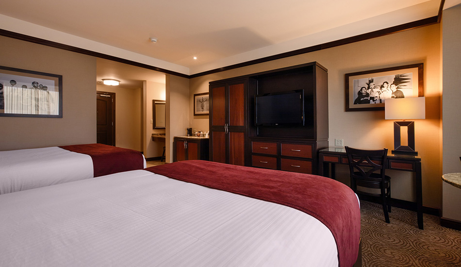 Designed for comfort and convenience, this room features two queen beds, accessible bathroom features, and the cultural warmth of Osotouy Tower.