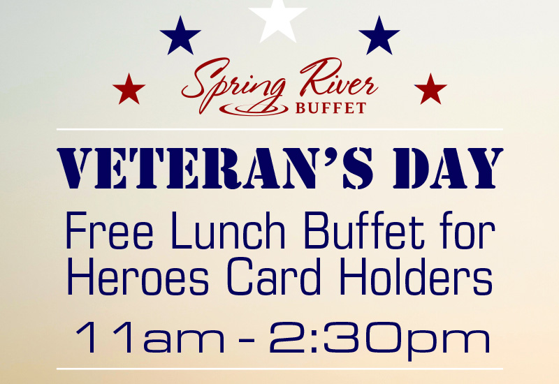 Show your Heroes Card at Spring River Buffet for a free buffet on Veteran’s Day!