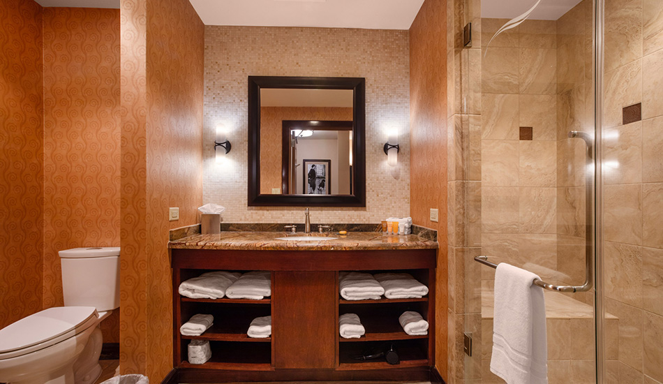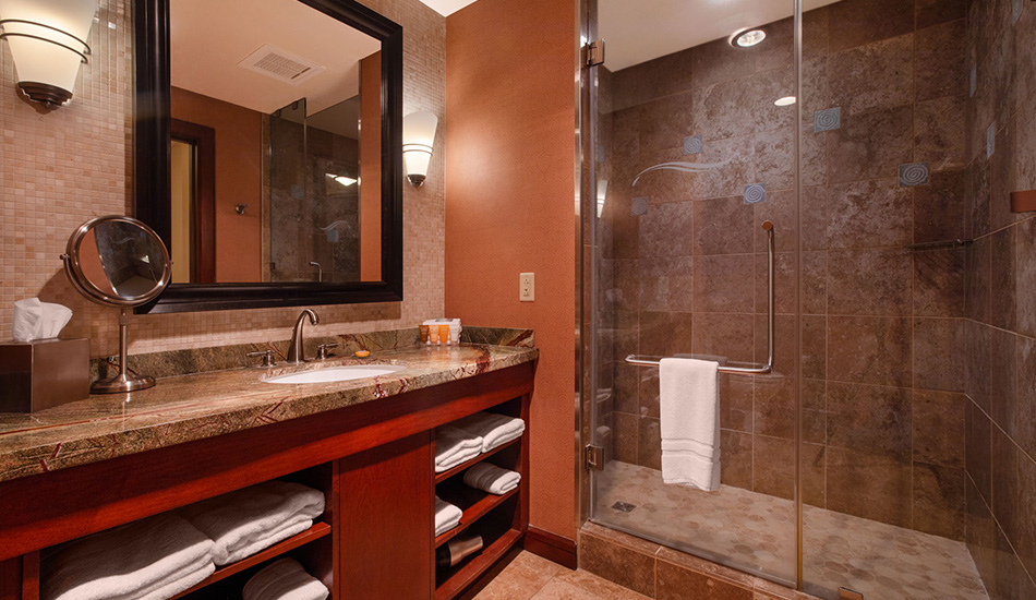 Enjoy an effortless stay with roll-in showers and accessible amenities, all wrapped in the modern styling of the Kappa Tower.